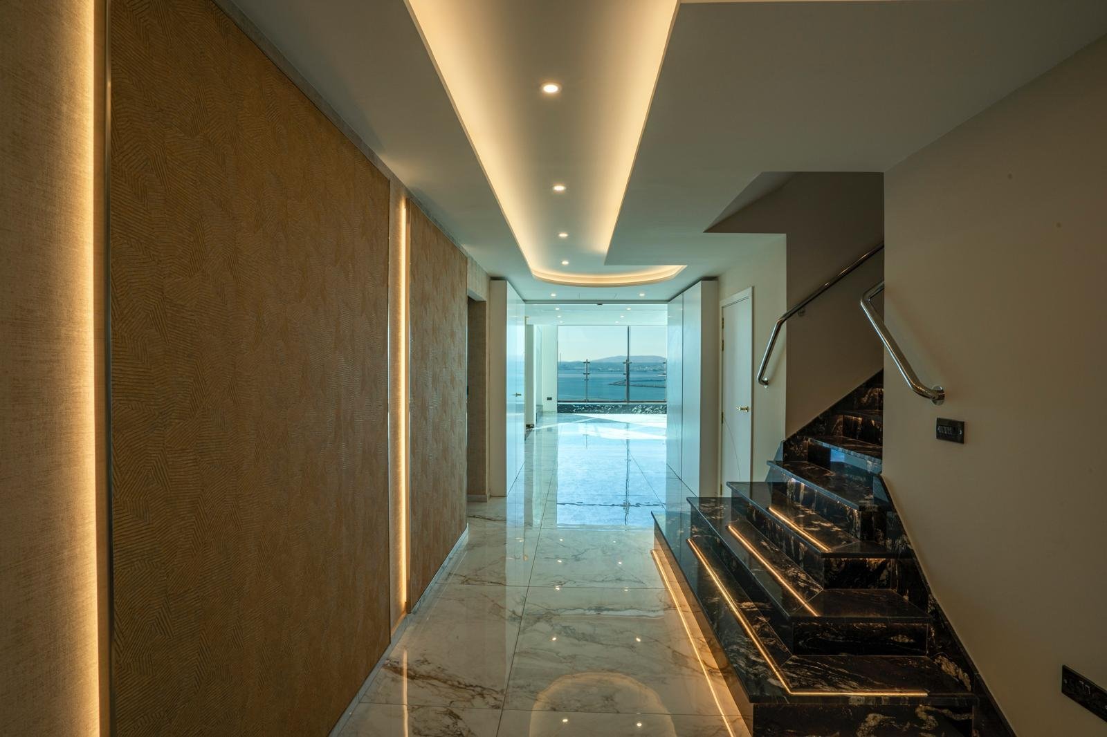 The ground floor of this duplex exudes opulence, featuring an inviting entrance hall, a separate, self-contained apartment, a convenient laundry room, a relaxing sauna and a state-of-the-art cinema room. At the far end of the hallway, you'll discover an expansive open-plan kitchen, dining, and reception area, adorned with floor-to-ceiling windows that bathe the entire space in natural light. Adjacent to this space is a charming garden room that leads to the sprawling terrace and an inviting pool area. Beyond the private pool, residents can relish the luxurious amenities offered by the multiple communal pools of Ocean Village.